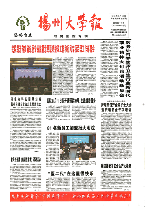 《扬州大学报•附属医院专刊》第8期(总第596期)(2018年8月15日第1版)