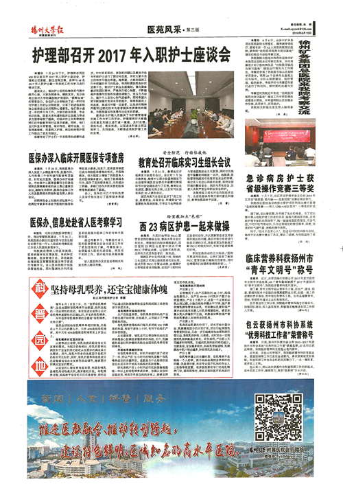《扬州大学报•附属医院专刊》第7期(总第595期)(2018年7月15日第3版)