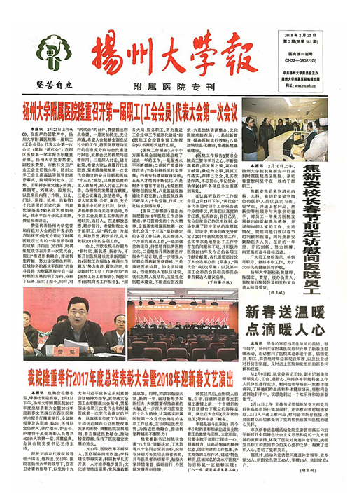 《扬州大学报•附属医院专刊》第2期(总第581期)(2018年2月25日第2版)